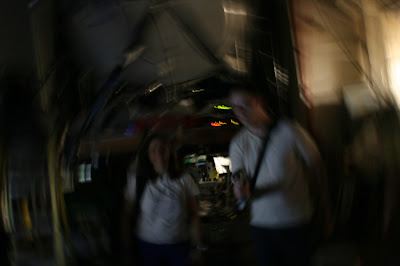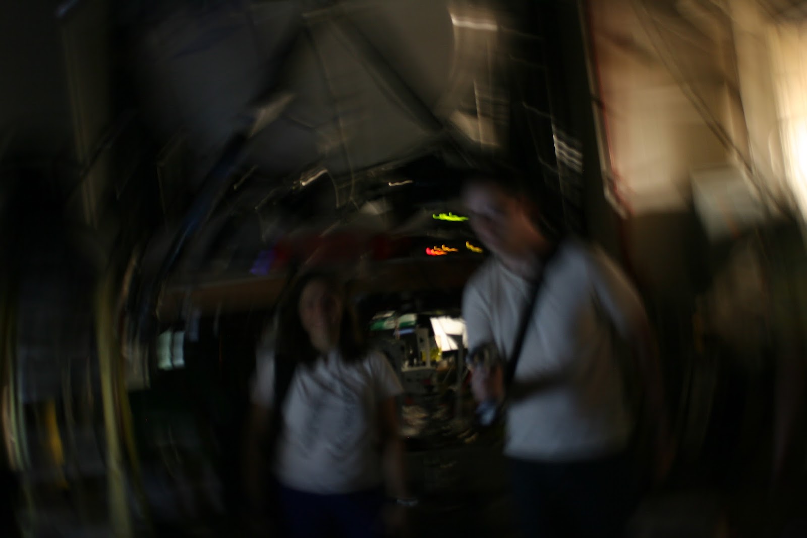 And, very late at night, we undoubtably get a little slap happy at times. Here’s a “creative” shot of Sasha and Sean, getting ready to leave for the night. I had been playing with long exposures outside to get the water tower picture, and took a long shot while rotating the camera to get this.